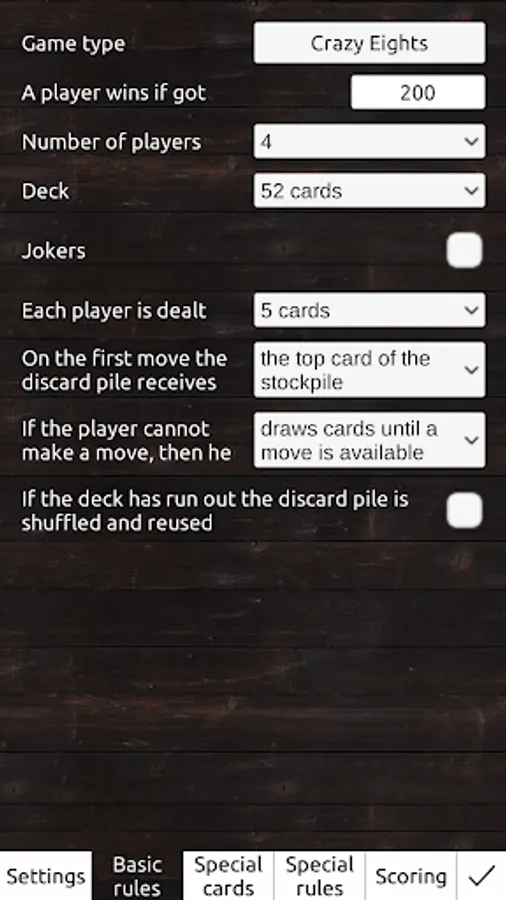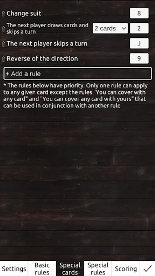 - a large number of rules to customize the game as you like