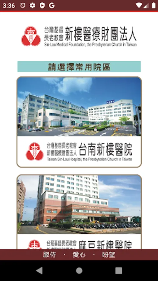新樓醫院在歷任院長的用心經營下,以及新樓人秉持著本院精神:服待(Service)、愛心(Love)、盼望(Hope) 的默默付出,方能走過百年歲月,直至今日成區域教學醫院的規模。新樓醫院有台南新樓醫院、麻豆新樓醫院(含麻豆新樓護理之家)、新樓安南診所三個院區,提供台南市民完善的醫療服務。