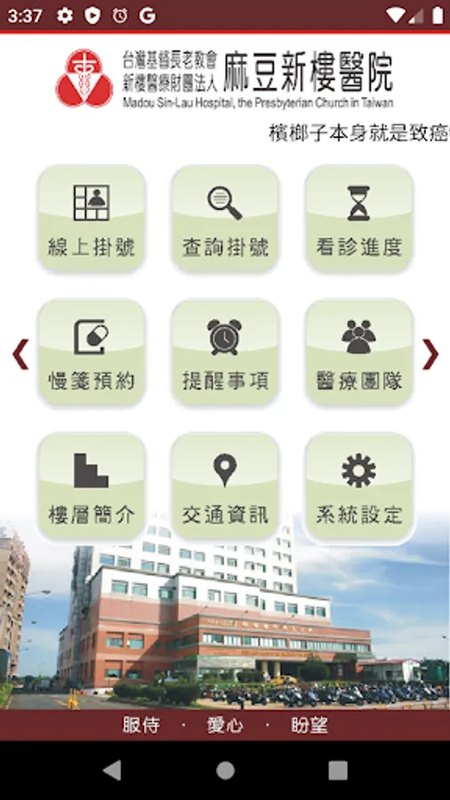 讓您隨時隨地一手掌握就診資訊,包括看診進度、看診提醒、行動掛號、門診表、衛教新知、最新消息、醫療團隊介紹、交通資訊、電話快撥等服務,歡迎民眾踴躍下載使用。