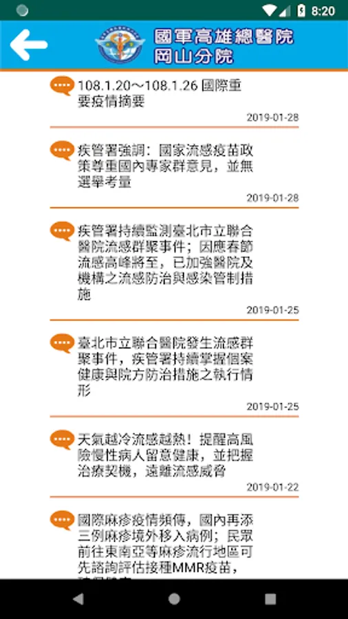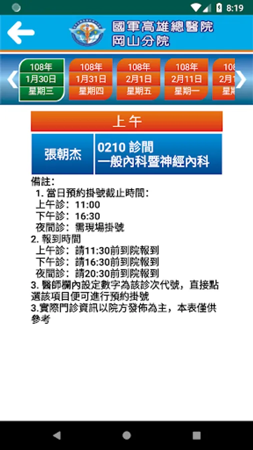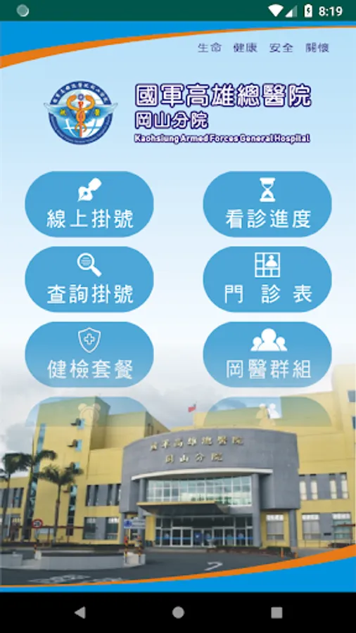 安裝國軍岡山分院,隨時隨地掌握就診資訊,包括看診進度、看診提醒、行動掛號、門診表、衛教新知、最新消息、醫療團隊介紹、交通資訊、電話快撥等服務,歡迎下載使用。