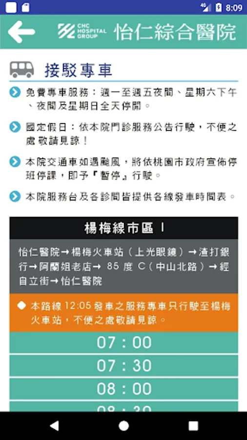安裝怡仁綜合醫院APP「行動資訊服務系統」,讓您隨時隨地一手掌握就診資訊,包括看診進度、看診提醒、行動掛號、門診表、衛教新知、最新消息、醫療團隊介紹、交通資訊、電話快撥等服務,歡迎民眾踴躍下載使用。我們也將不定期提供系統功能升級與更新版本。