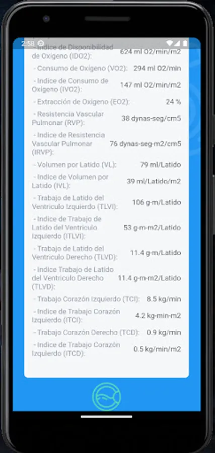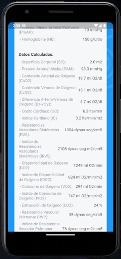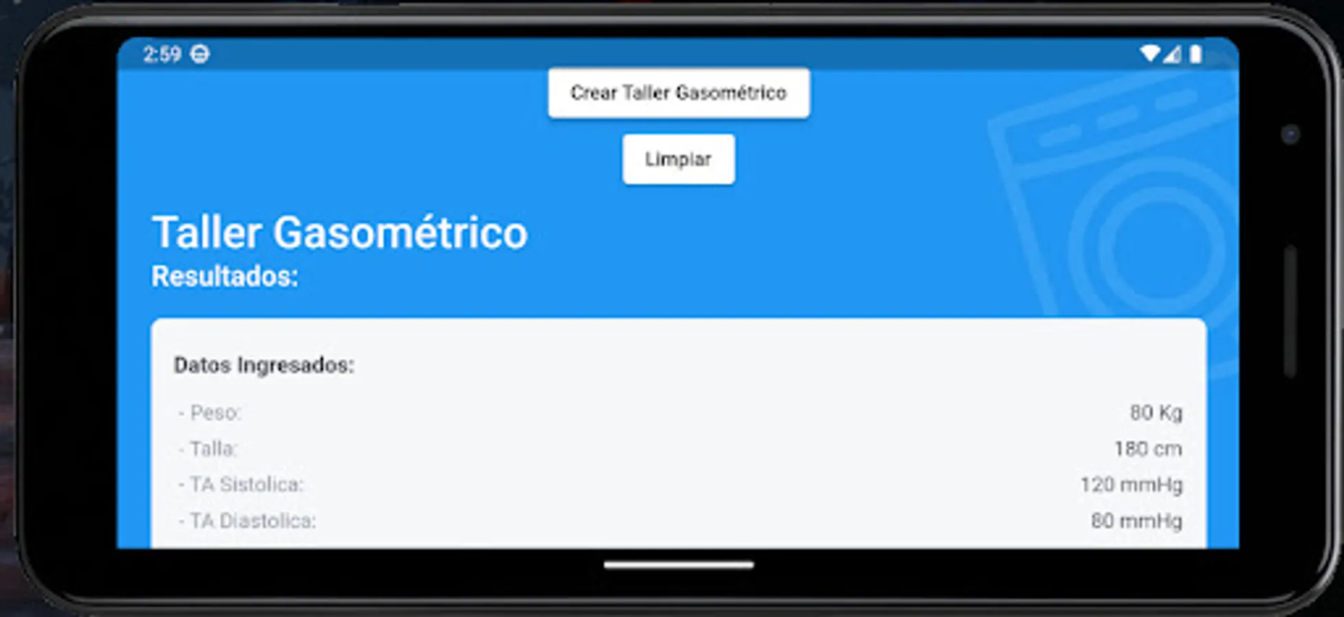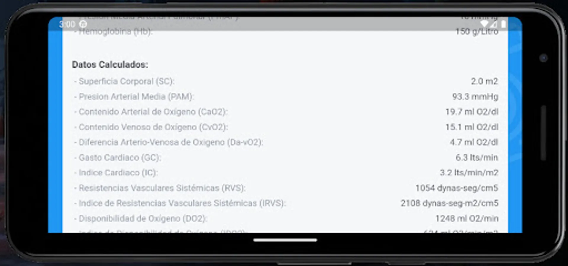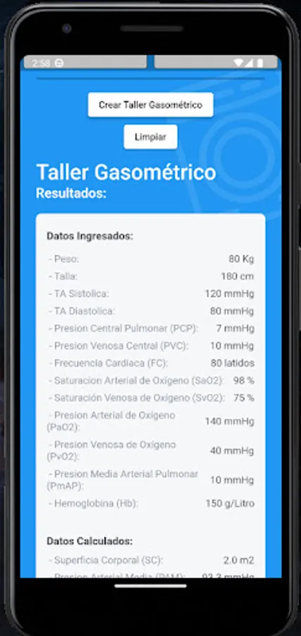 With the help of this app, you can carry out a gasometric workshop to know values such as: