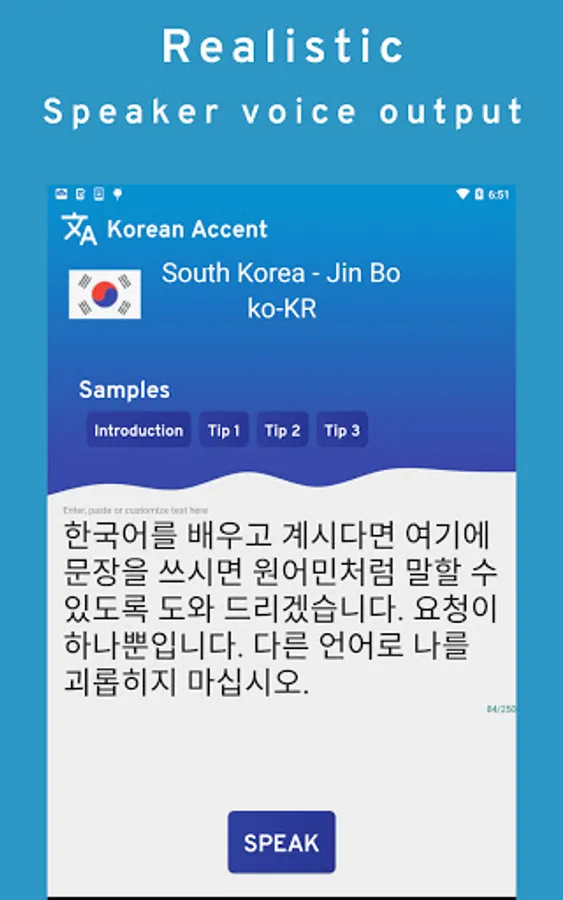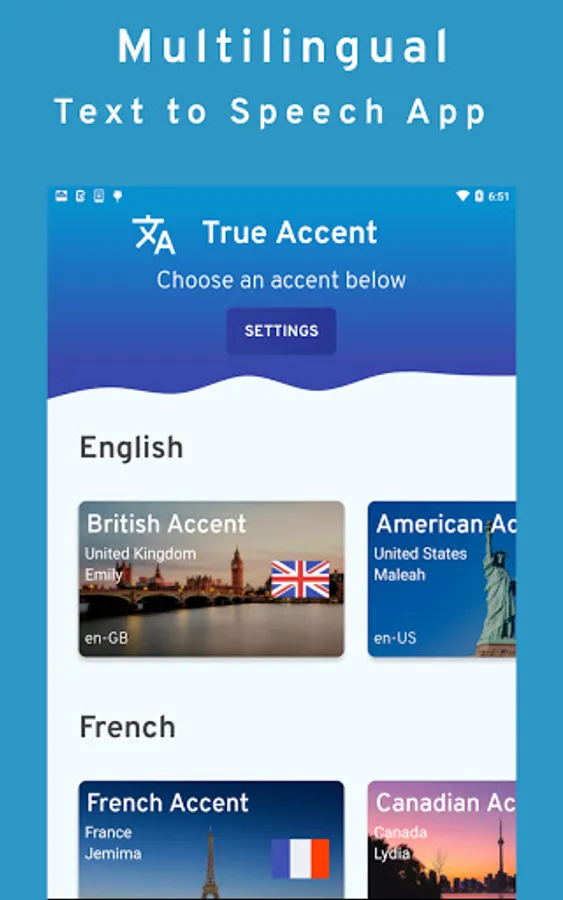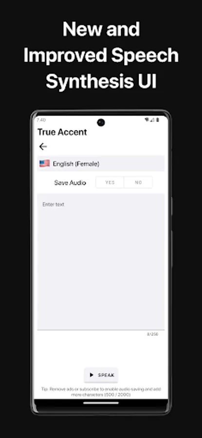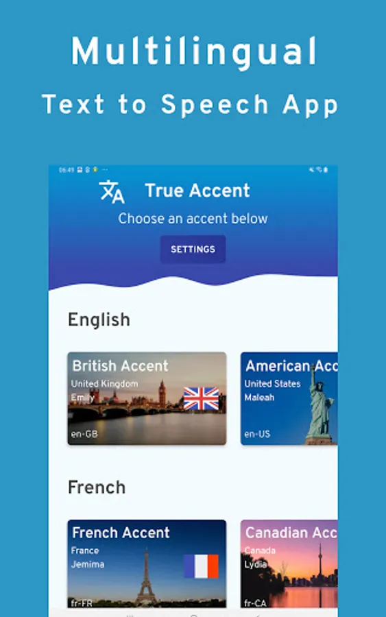 True Accent can also help users learn how to speak a new language by teaching them to speak whatever they type like a native. It recognizes comma's, full stops, spaces, paragraphs and special characters to provide speech in a human-like voice.