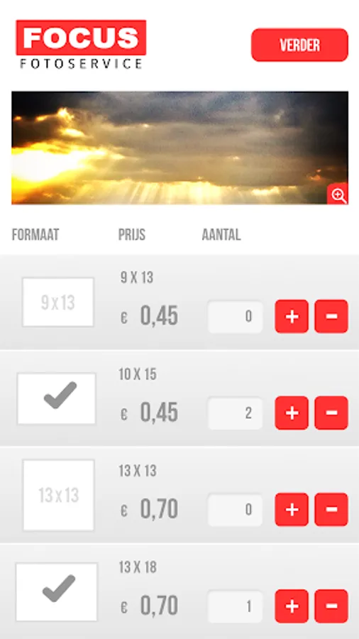 Install the Focus Photo service app and see how easy it is to order photos directly from your smartphone or tablet. We print on Kodak professional paper printing and correct all the pictures on brightness and color. The colors of our prints are guaranteed 75 years. In addition to pictures you can order canvas and photo gifts from the Focus Photo service app.