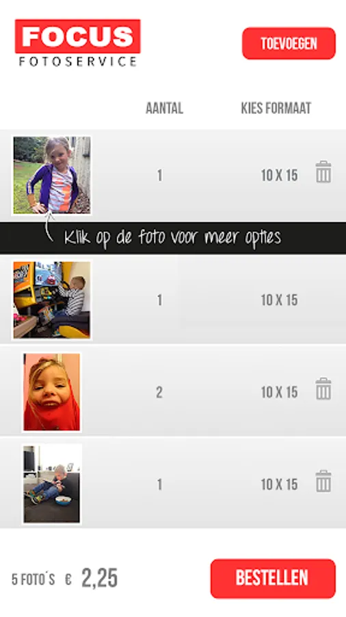 Your smartphone is probably full of pictures. Obviously, because you increasingly used him as a camera. With these pictures you can do anything. You can add them to a message on Facebook, send in an instant message through WhatsApp or ... be printed on the highest quality through the Focus Photo Service app!