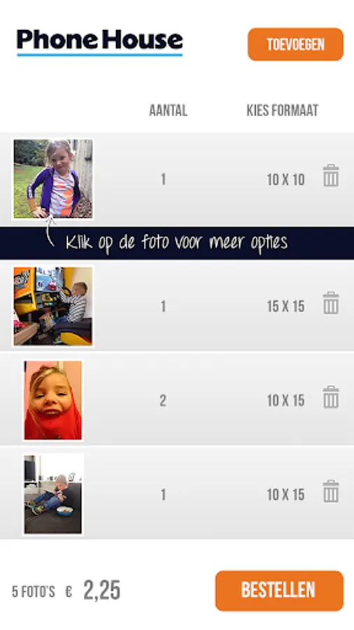 Your smartphone is probably full of photos. Logical, because you increasingly use it as a photo camera. You can do all kinds of things with these photos. You can add them to a message on Facebook, send them in a chat message via WhatsApp or ... have them printed to the highest quality via the Phone House photo app!