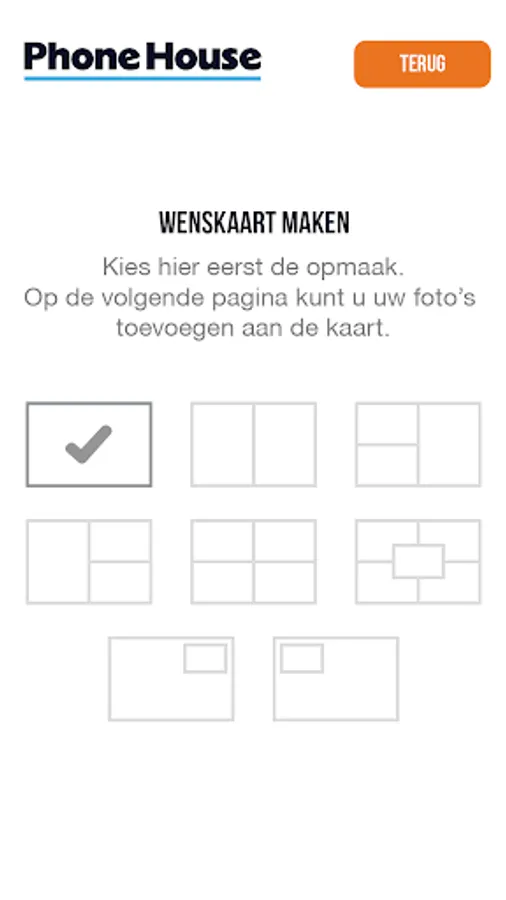 In addition, the Phone House photo app offers the possibility to design and send cards with your own photos. Ideal for holidays, Valentine's, birthdays or Christmas. Of course you can also just send someone a card! Choose from one of the eight layouts, choose your photos and enter your personal message on both the front and back of the card. We print the card with a professional digital HP Indigo printing press and apply a laminating layer so that the card always remains beautiful.