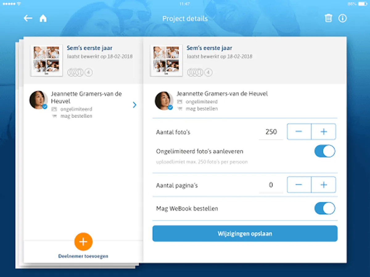 WeBook (or We Book) is a simple and fun way to make a beautiful photo album with several people (but of course it is also allowed). Invite your friends, family or your association. Start an album with your class or record your bachelor party or group holiday. Share your best memories with WeBook. The possibilities are endless!