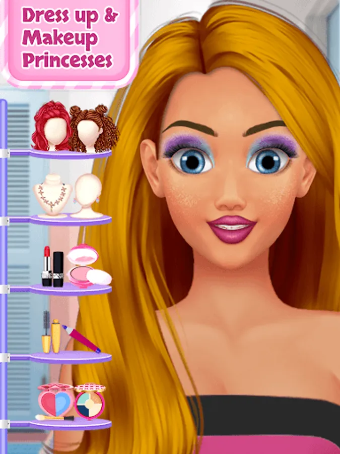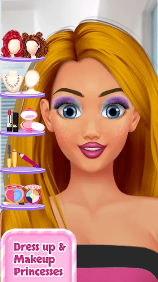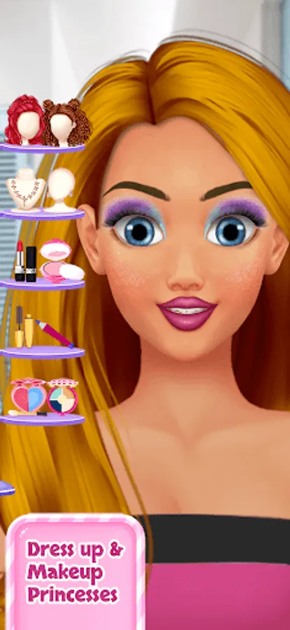 This game will allow you to make up different princesses and dress them with beautiful dresses. Change their hairstyles and turn them into beautiful princesses with colorful makeup.