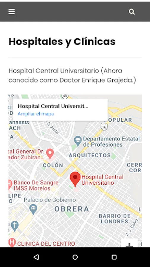 Locates, health centers, hospitals, clinics, doctors.