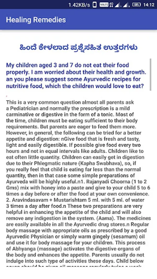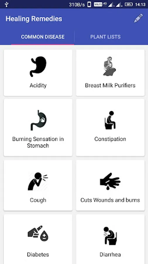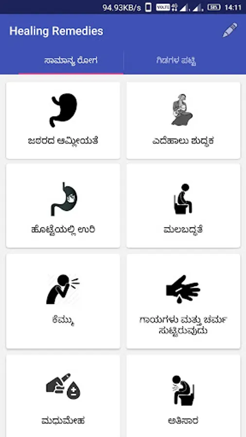 This App provides Healing Remedies using medicinal herbs available after forming recipes and applying. The ailments covered in this website are limited to minor problems, mild deviations from normal health and those that can be easily diagnosed and self-managed. References to complex and choric ailments that do need professional medical advice have been deliberately avoided. The primary health care problems listed in the website have been categorized into the following major groups: Common Problems (acidity, burning feet, constipation, cough, cuts and wounds, diarrhoea, fever, headache, hoarse throat, indigestion, sore eyes, stomach ache, urinary problems, vomiting, worms, etc.).