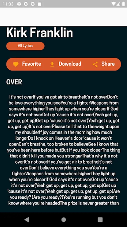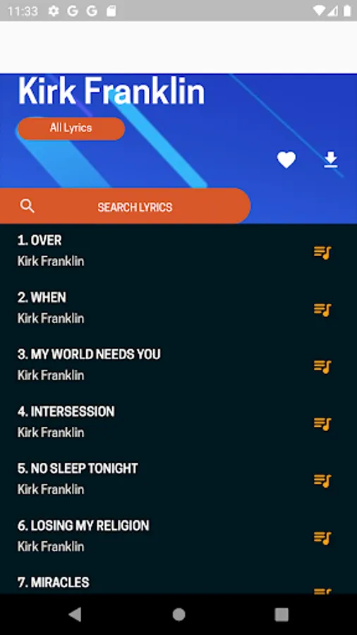 Kirk Franklin Songs lyrics makes it easier for users to sing by using the lyrics in it. Make sure the internet connection is on to use this application to read the lyrics