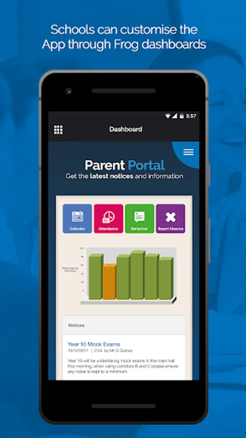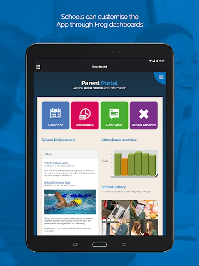 Customise your school’s app. Schools can choose what information to display and include their own guidance alongside.