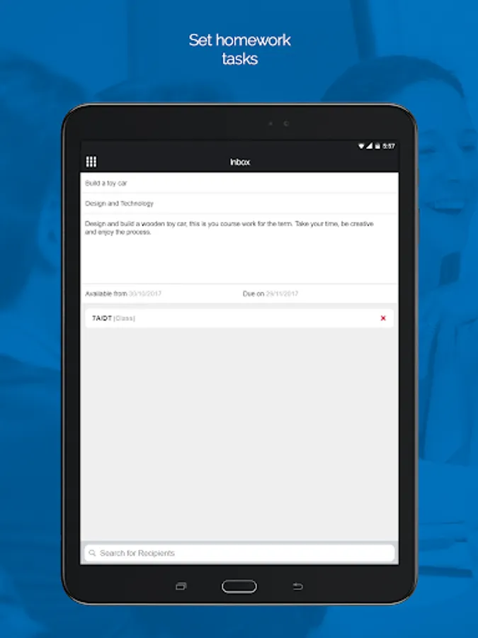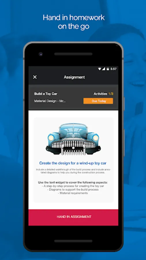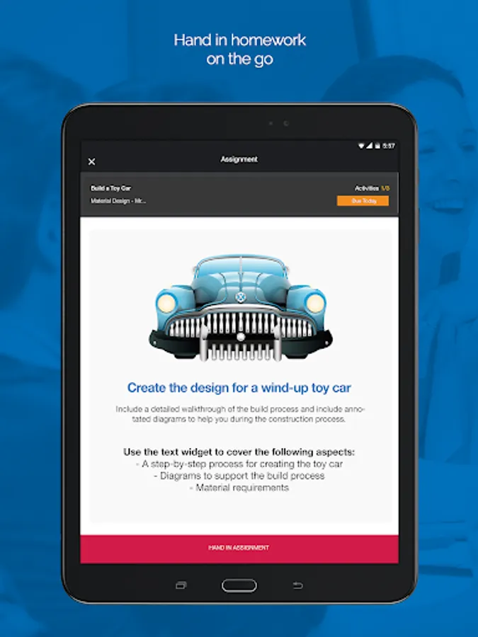 • Manage your child’s homework schedule and deadlines using the handy calendar view