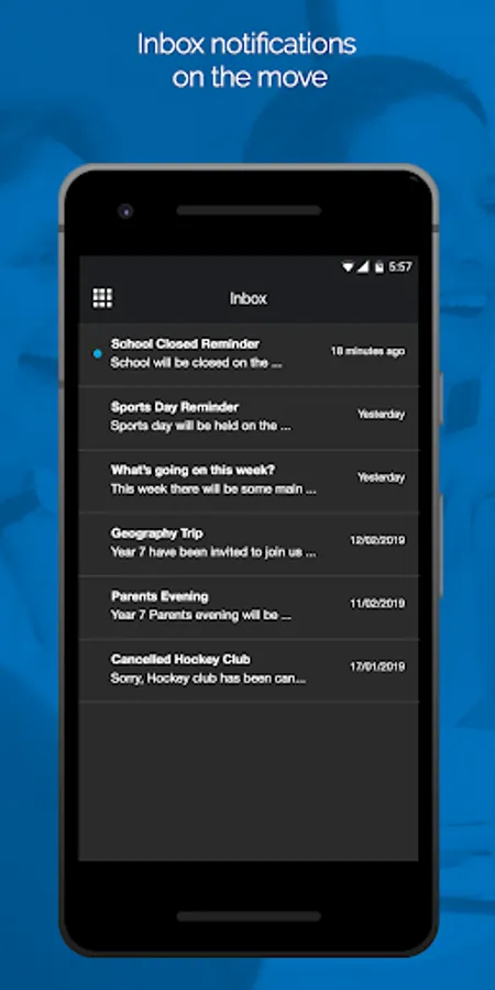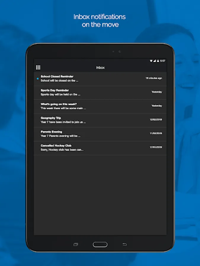 • Receive messages from your child’s school and teachers in the app’s inbox