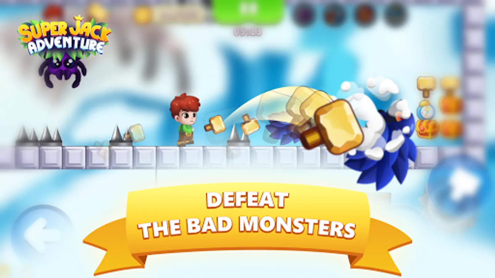 - The game has 4 buttons with 3 main functions: running, jumping, shooting hammer (attacking monsters - enemies).