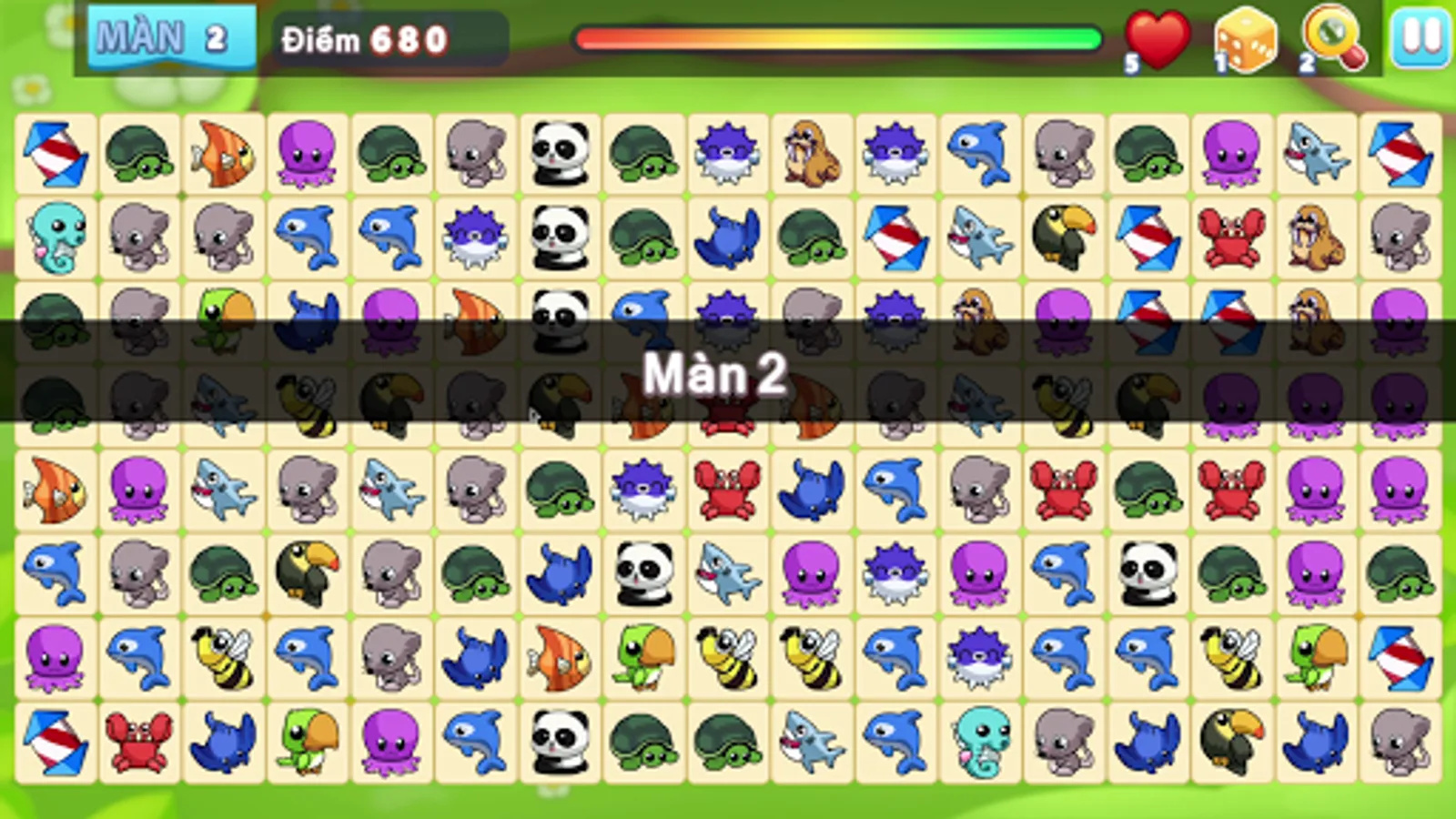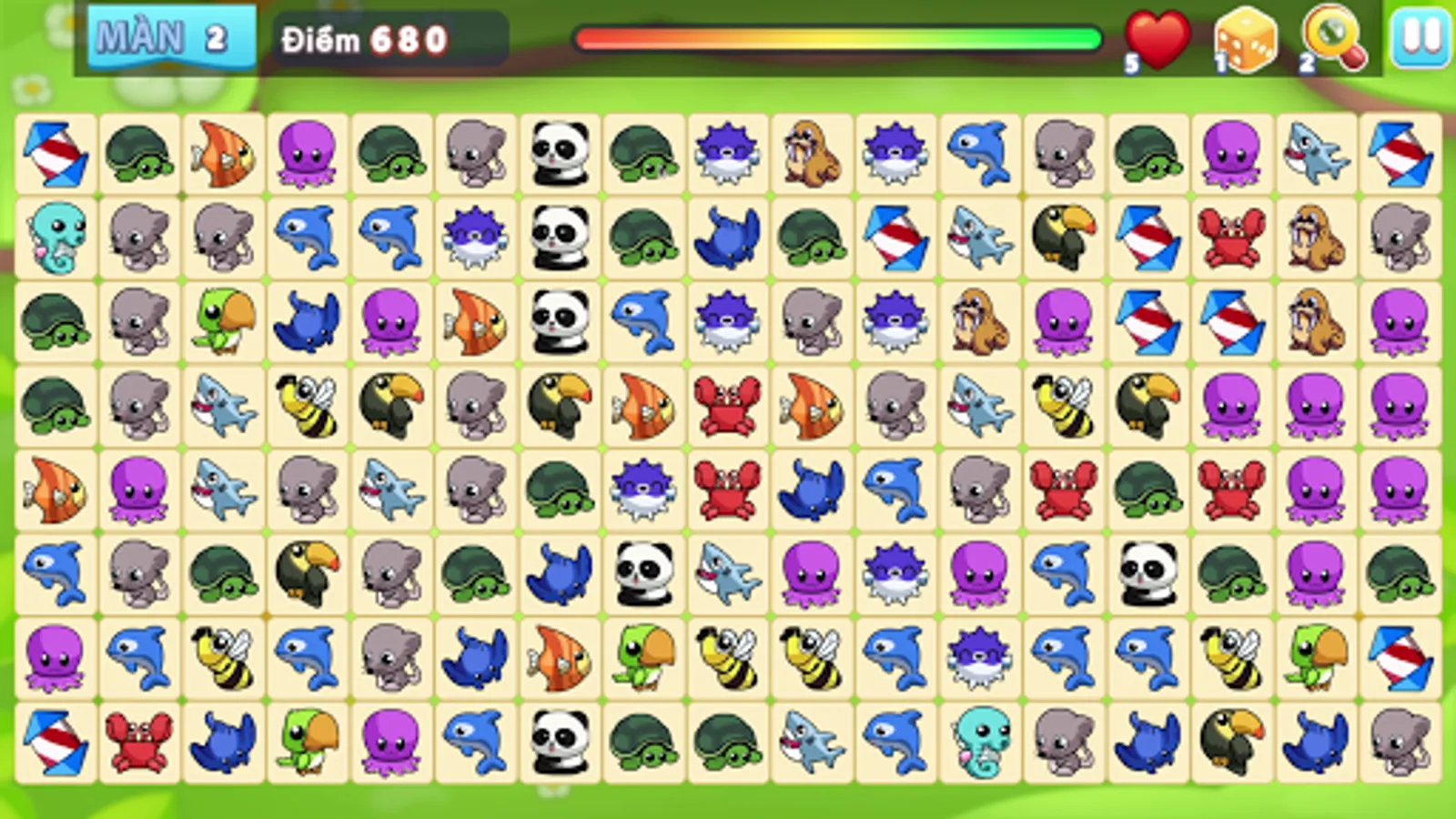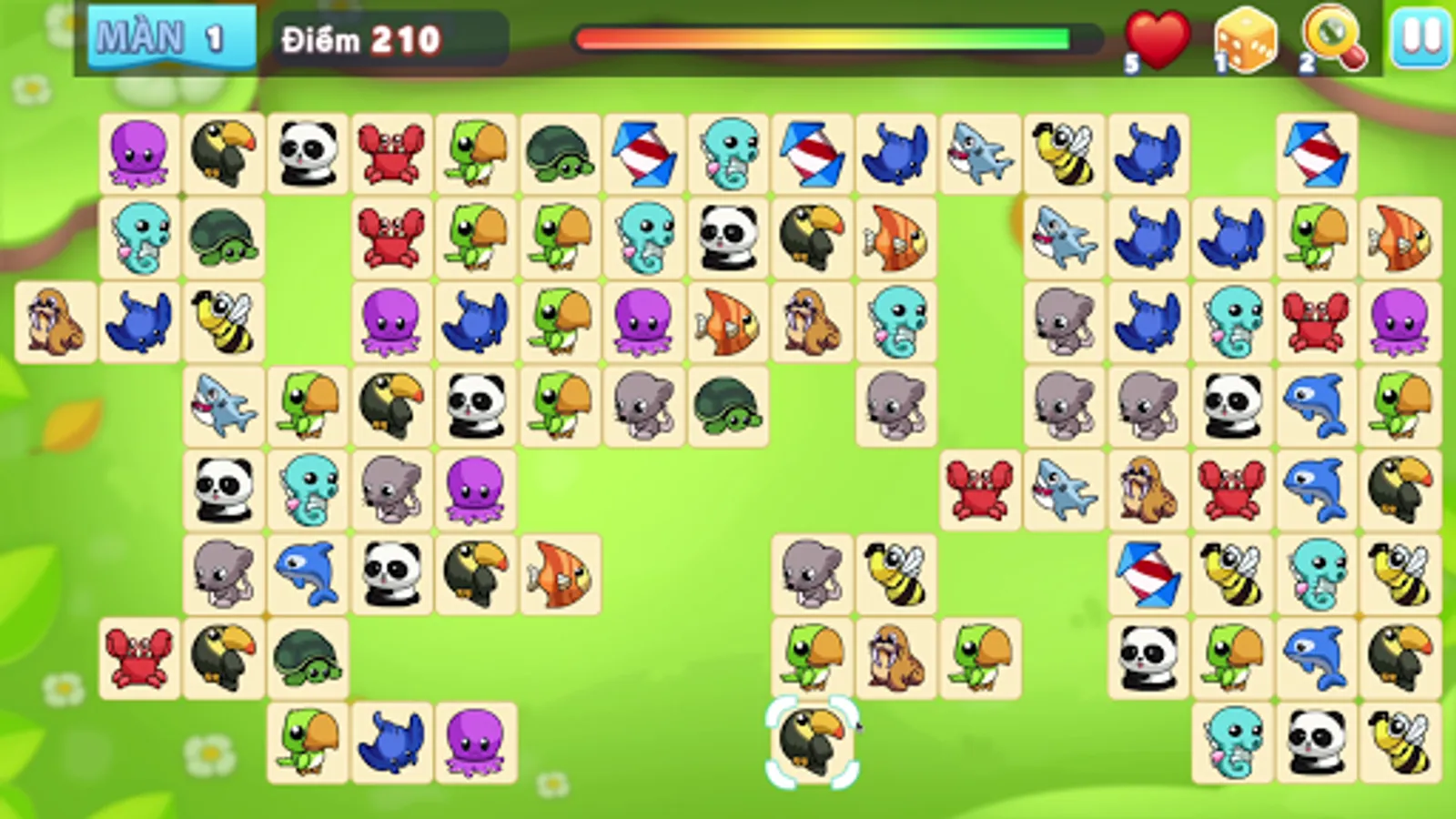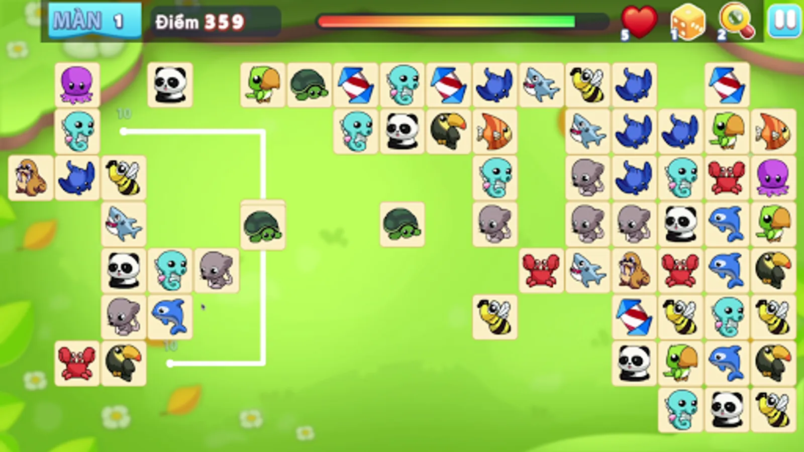 - Attend to number at top left corner: LIVE, when there is no pair on the board, all animals will change position and LIVE will be reduced by 1.