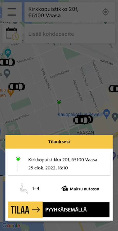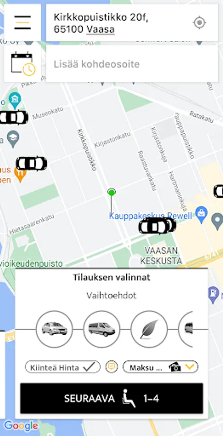 Taksi Vaasa order application. You won't miss a ride with a taxi.