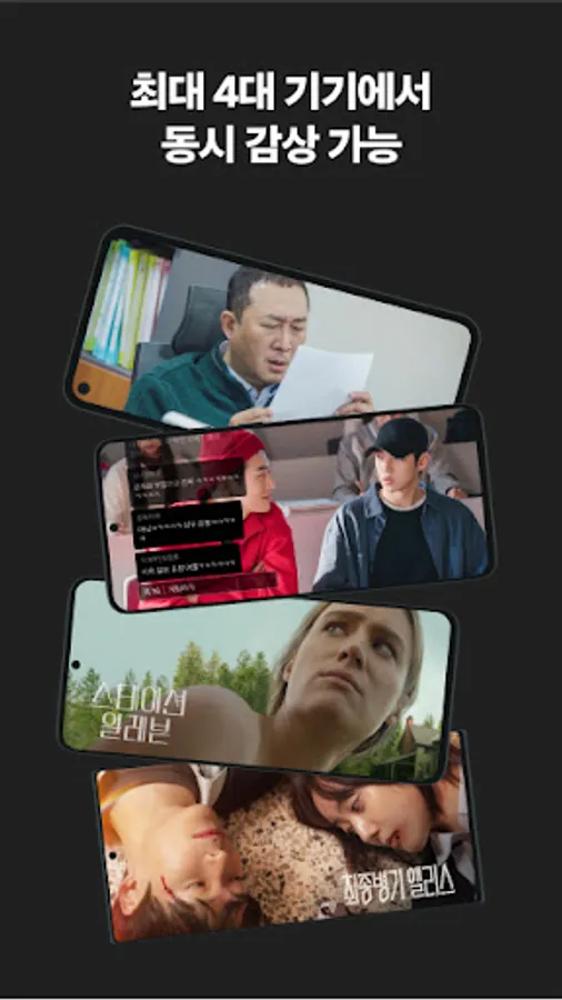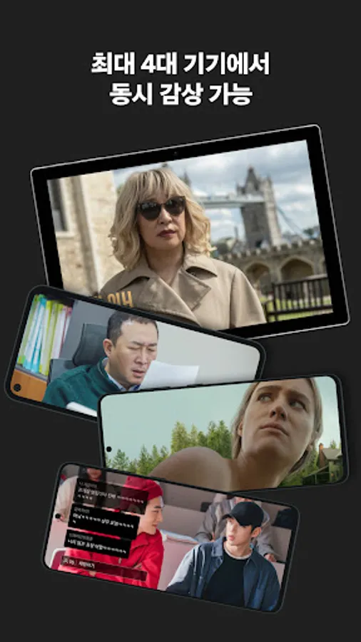 • 기기 등록은 최대 5대까지 가능하며, 동시 재생은 이용권 종류에 따라 최소 1개, 최대 4개까지 지원됩니다.