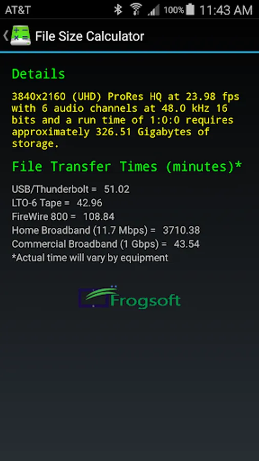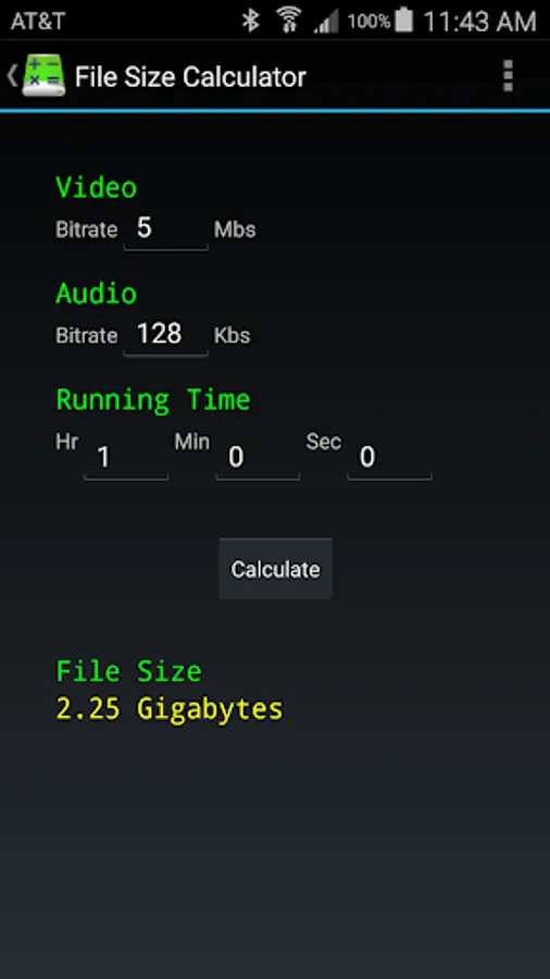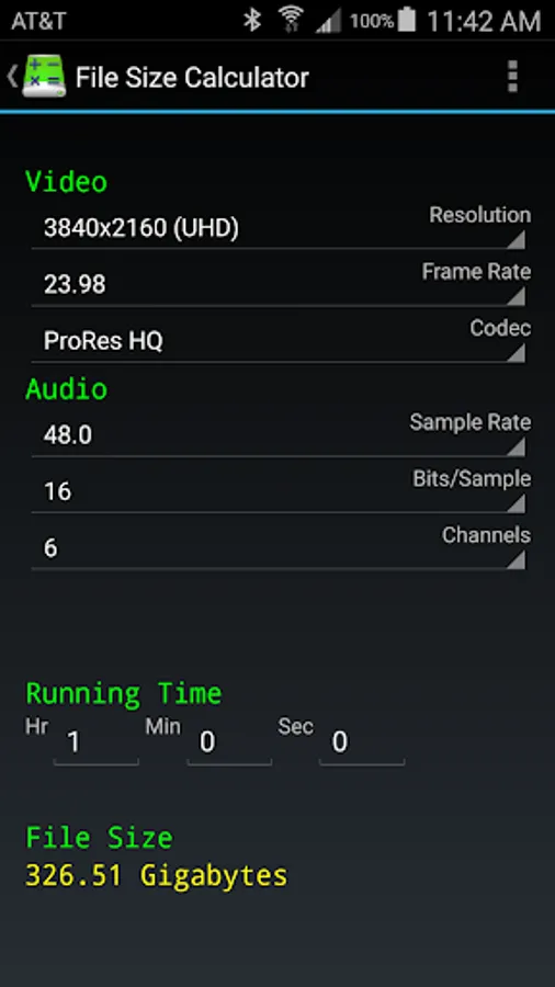 Video files can be quite large, and take up a lot of disk space. It is frustrating to start a project and discover you don't have enough disk space for your videos. With File Size Calculator you can pre-determine how much space you will need. With resolutions from NTSC to 4K, and many codec and bitrates you will know how large those video files will be.