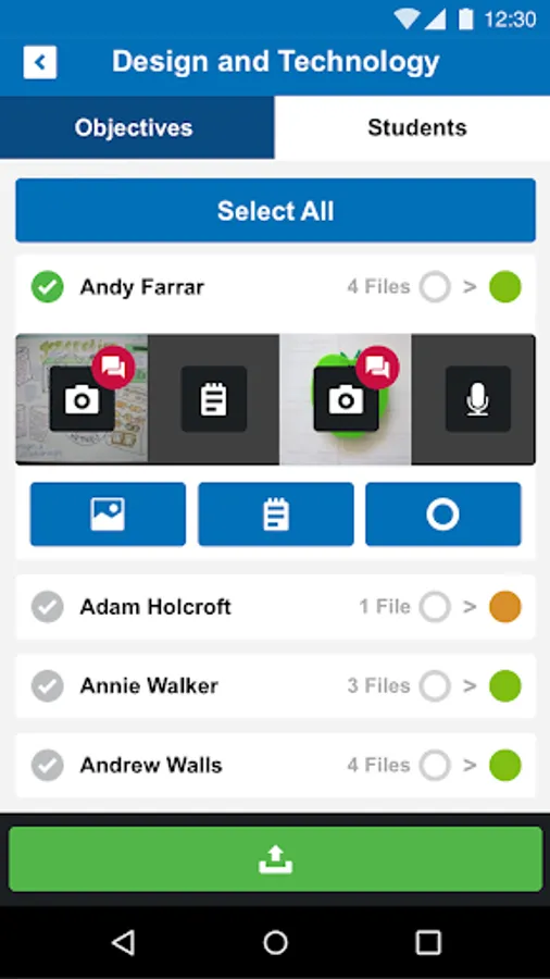 Media added using this app will appear on the learning objective evidence timelines in Student Tracker and will also be visible for both students and parents on their user timelines