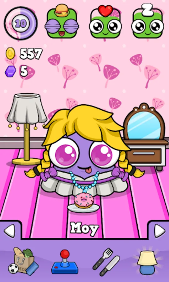 Adopt the cute little virtual pet Moy and enjoy countless hours of exciting and fun gameplay. With life-like emotions, stunning graphics and fluid animations it will feel just as if Moy is real, and you will hopefully love him just like a real pet.