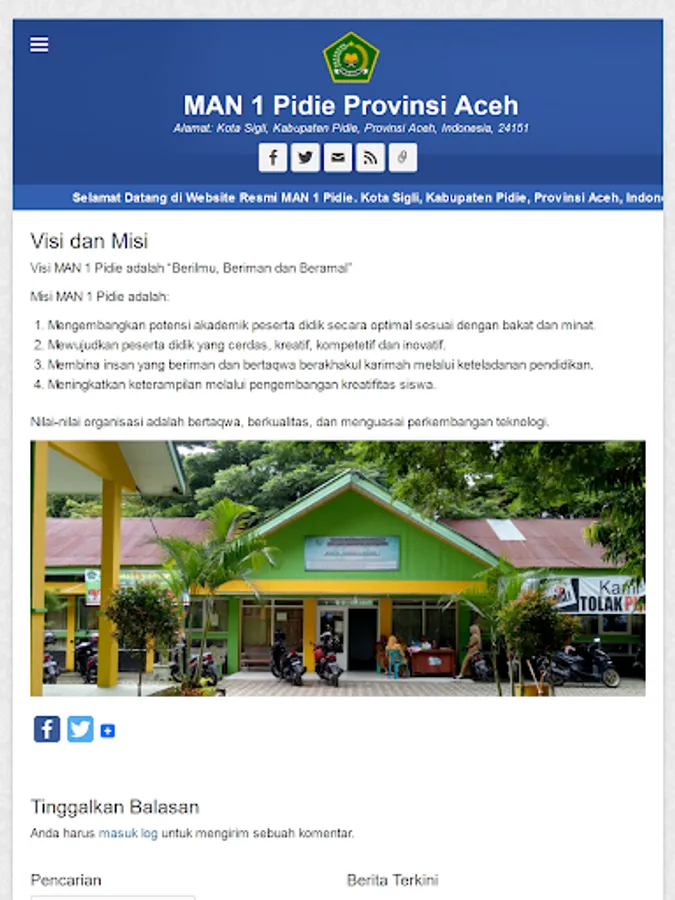 Website application to facilitate the public in getting information and publications about MAN 1 Pidie, Aceh Province, Indonesia.
