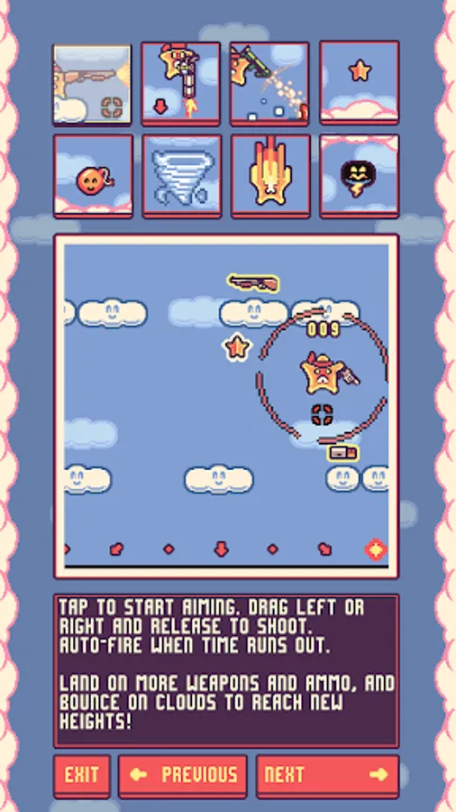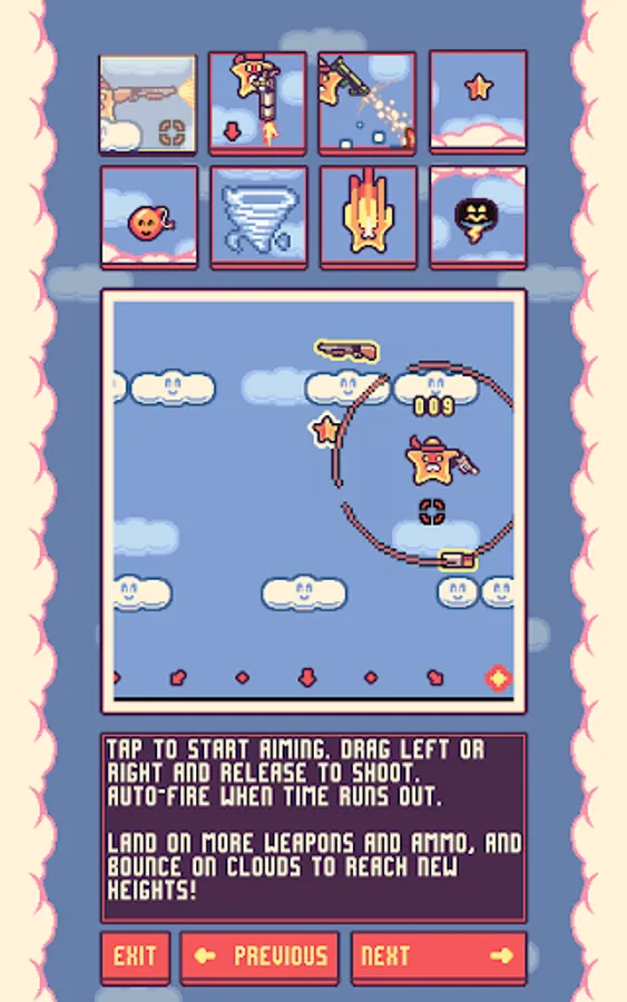 Shootin' Star is an endless platformer where you use a variety of guns to propel yourself upward. No ads, no micro-transactions, just endlessly replayable arcade action, high-score leaderboards to compete in, and a pile of achievements to unlock!