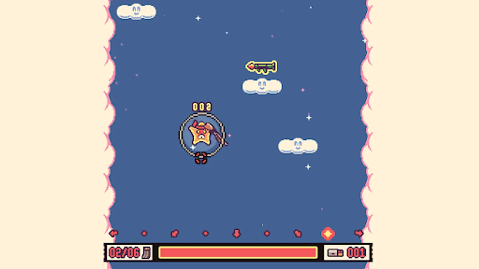 You're a star that's been shot out of the sky, and now you'll need to shoot your way up again. Sometimes when you shoot for the stars, they shoot back!