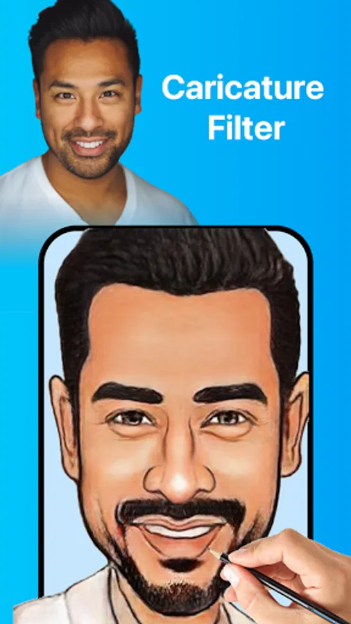 CaricatureMe uses the latest deep learning algorithm to transform your photo into a caricature in 1 tap.