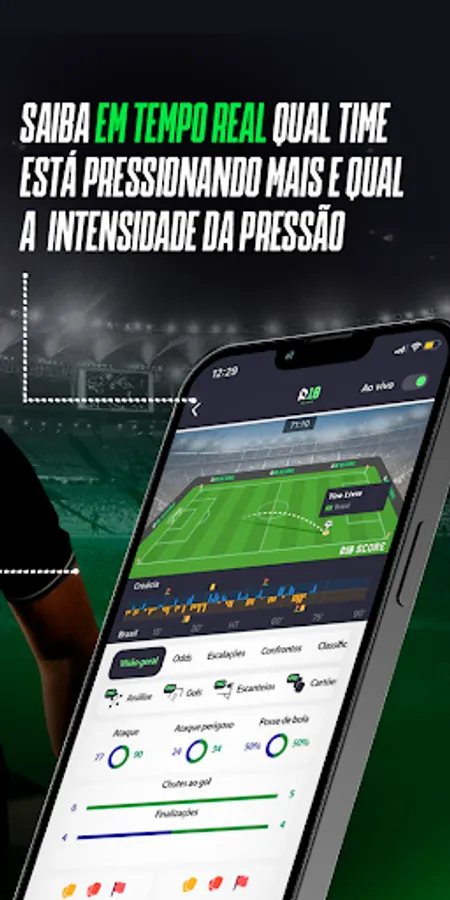 MATCH MOMENTUM AND EVENTS - With the game going on, you know in real time which team is pressing the most during game time, and the intensity of the pressure.