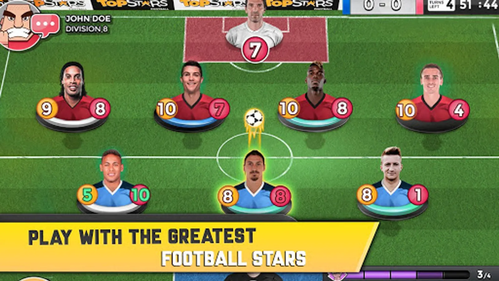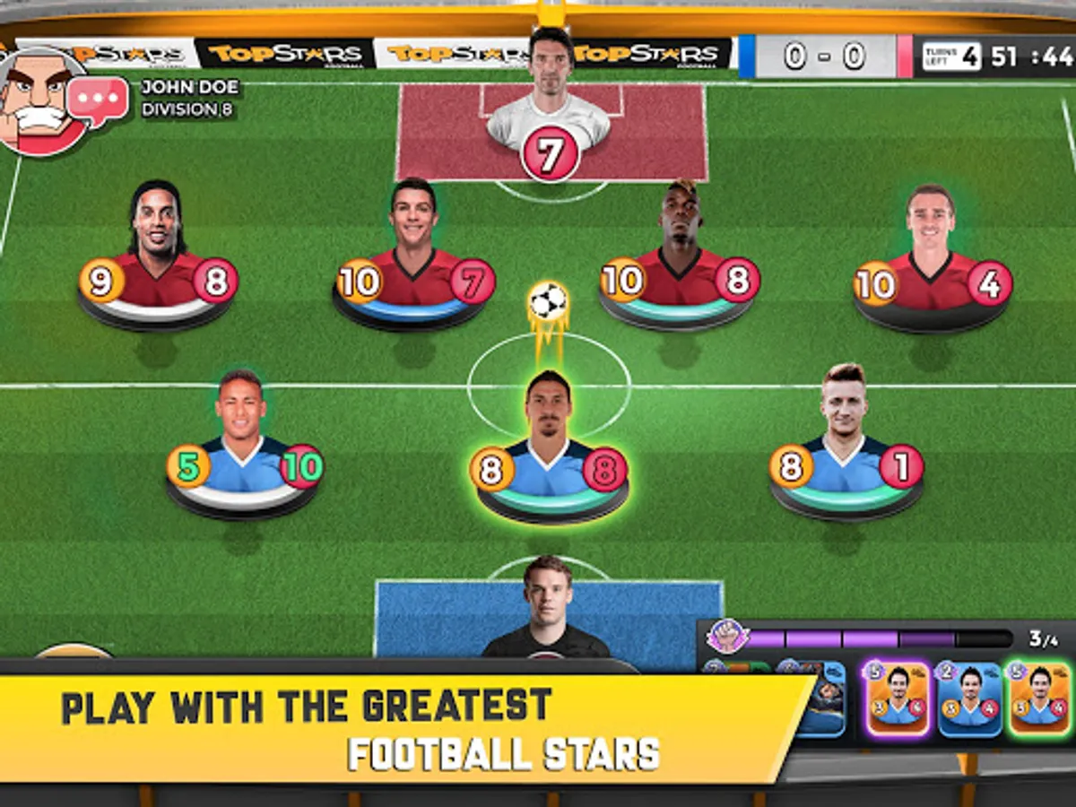 If you like head to head games, you will love Top Stars. In this top football strategy game, you can choose your favorite soccer stars to beat the football cards of your opponents. Choose your match strategy and decide which soccer cards you will start with. To be at the top of the temple of football, Top Stars will guide you by its unique match strategy configuration of soccer cards.