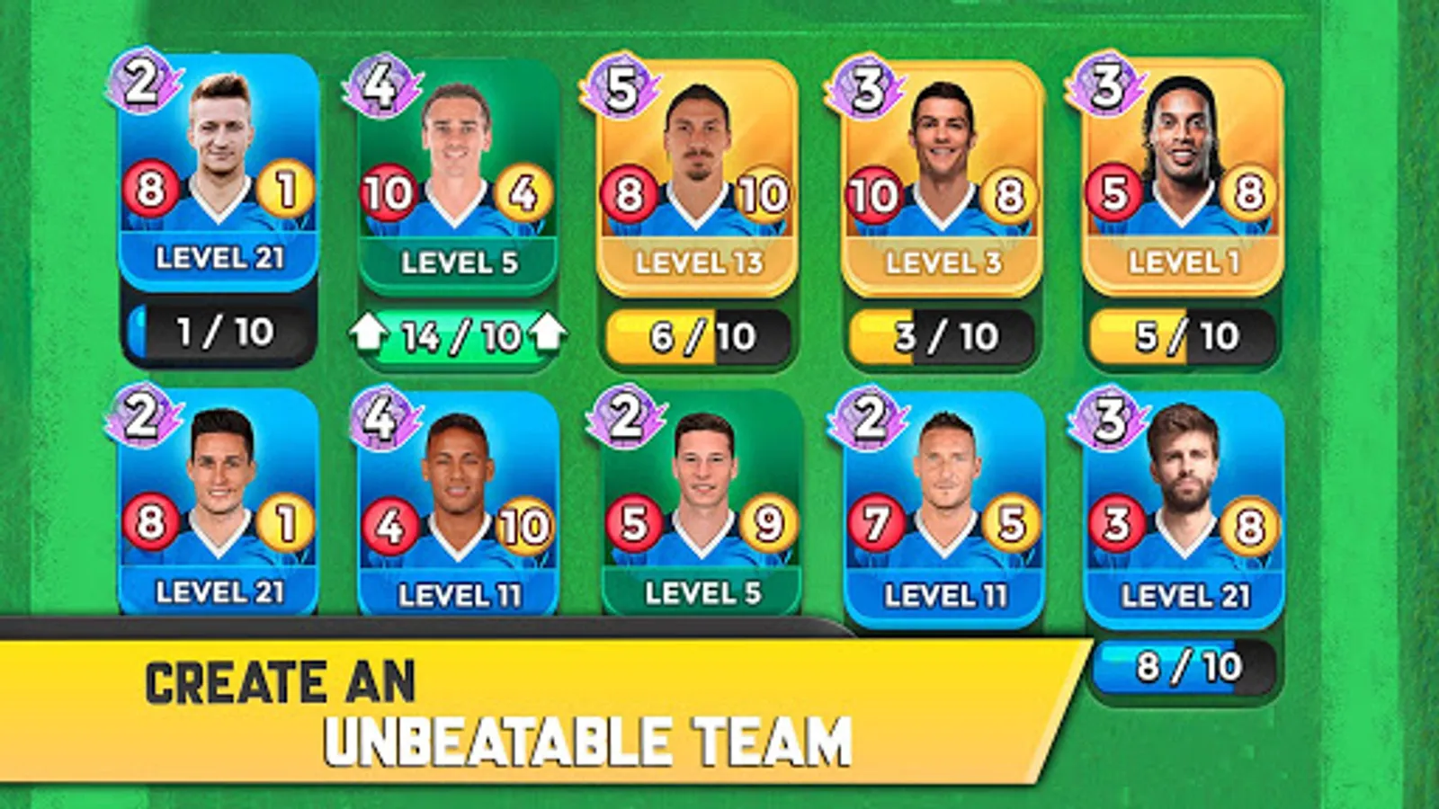 This football strategy game is the best choice to get a unbeatable formation with the amazing soccer stars on football cards.