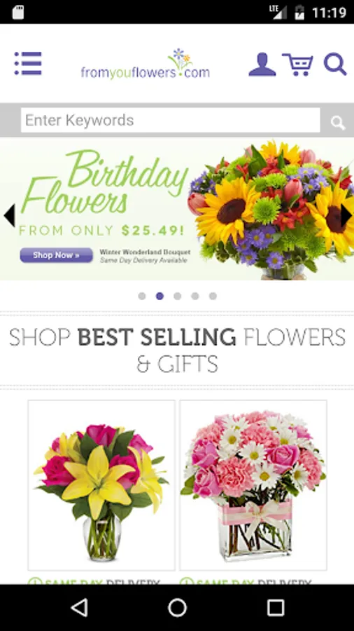 At From You Flowers we strive to make your experience order flowers online with us unforgettable. We know that when you send flowers it comes from the heart. We work hard to ensure your bouquets are fresh, beautiful and delivered on time to celebrate every occasion. Our online store offers a collection of unique gifts including flowers, gift baskets, teddy bears and balloon delivery. All for same day or next day delivery. Celebrate today's special occasion with a flower delivery! From You Flowers offers beautiful flower arrangements for same day delivery by a local florist. Whether you need to send flowers to New York, Texas, or California, FromYouFlowers.com offers USA flower delivery from coast to coast. Want to make it a one-of-a-kind gift? Add a teddy bear, chocolates or a balloon bouquet to your online flower order. We are the same day delivery experts; if you need flowers delivered today there is no better choice than From You Flowers!