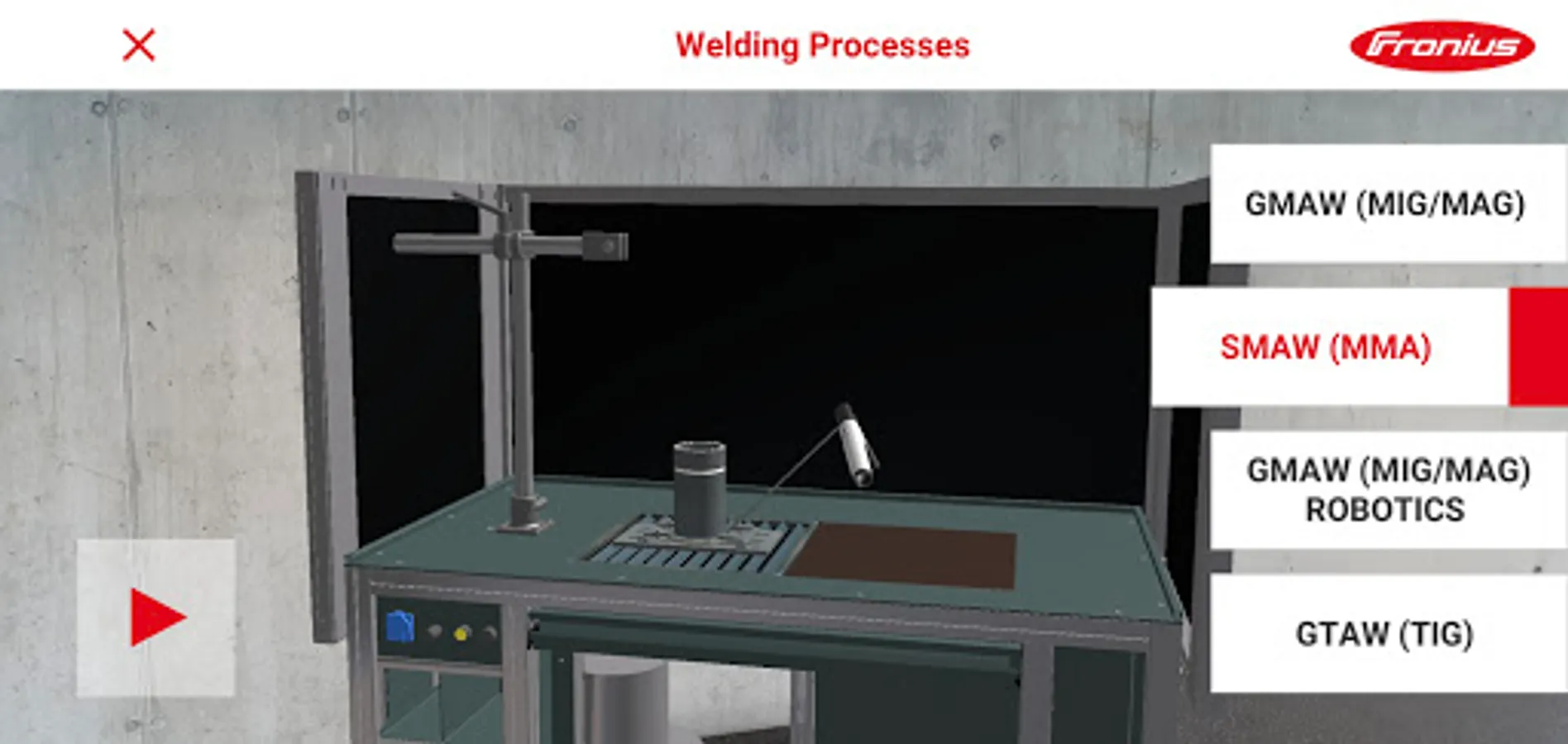 This App, available free of charge, easily combines presentation and information with fun. Using an augmented reality (AR) application, it is possible to show content like videos on Virtual Welding, 3D simulations of welding processes as well as explanations of the main benefits of virtual welding training on an flat surface. Markers for tracking are no longer required. VirtualWelding AR works with any device supporting ARCore respectively ARKit as well as Vuforia software solution.