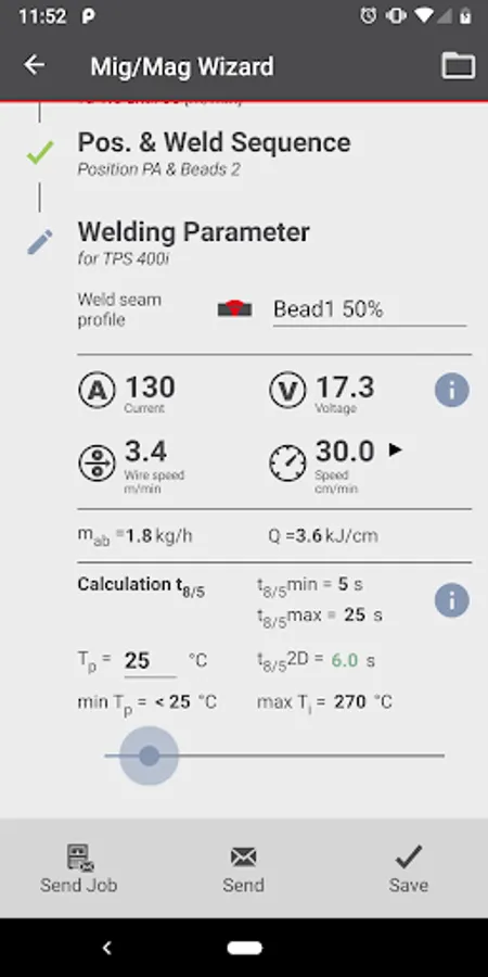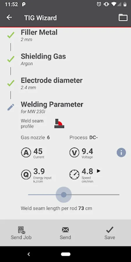 Save and edit all jobs (sets of target parameter sets) of the connected welding device directly in the app. The saved jobs can thus be transferred wirelessly to another welding device.