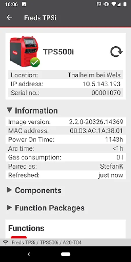 The Device Information area provides a comprehensive overview of all of the main configuration data, components, and available function packages. From there, you can also access the SmartManager (system website) for the connected welding system quickly and easily. The keyless function allows authorized users to log in to and out of the system without an NFC card.