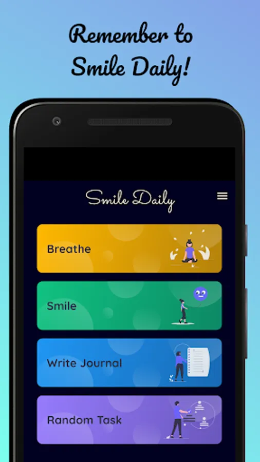 Smile Daily is a tool you can use every day to help improve your mental and emotional health. It offers daily challenges in the form of activities designed to take you out of your comfort zone, introduce new things into your life, and healthy habits and push you to become a better version of yourself. 🌈