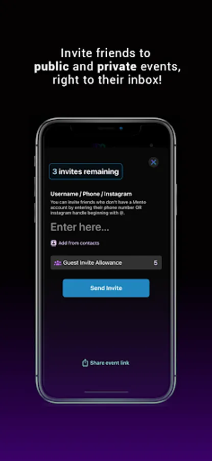 Guests - Have an NFT collectible as a lasting memory for every event you attend. Invite friends to events you are attending directly to their inbox, and get key information about your events at a glance.