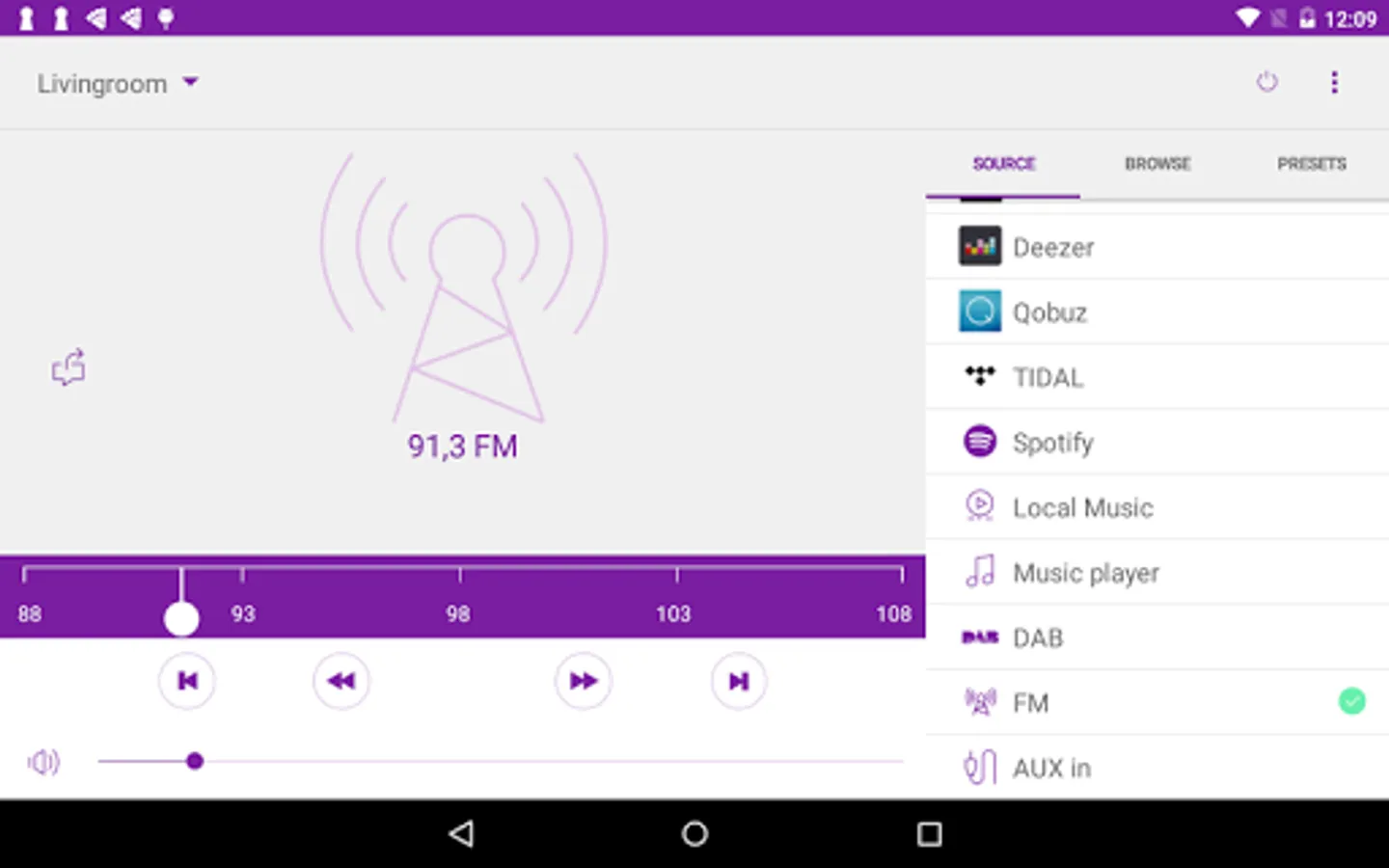 UNDOK™ allows you to control key functionality of your device including turning on/off, selecting the audio source, selecting the audio content, playing/pausing, setting the volume and accessing pre-sets.