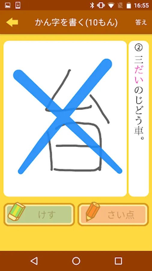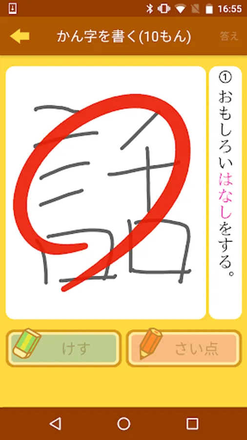 In "Writing Kanji", introduced a system that is automatic scoring and write with a finger to say on the screen, in the "read the Kanji", has adopted the method to choose the correct answer from the four-option.