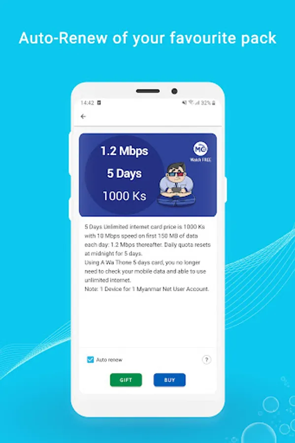 • Let application automatically buys your favorite internet package