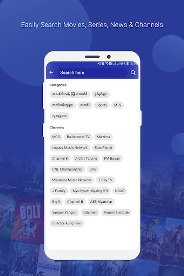 • Watch movies, series, news and MTVs with Myanmar Net internet network or any other network