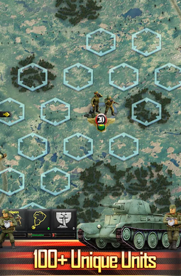 Units improve and unlock new behaviors once they get the experience needed, abilities that will prove indispensable in battle: Camouflage, Sabotage, Over-watch, Smoke, AT grenades, Artillery barrage, Shell Shock, Transport, Special Panzers, APCR, Suppressed, Routed, M.I.A, K.I.A, Infantry Charge.