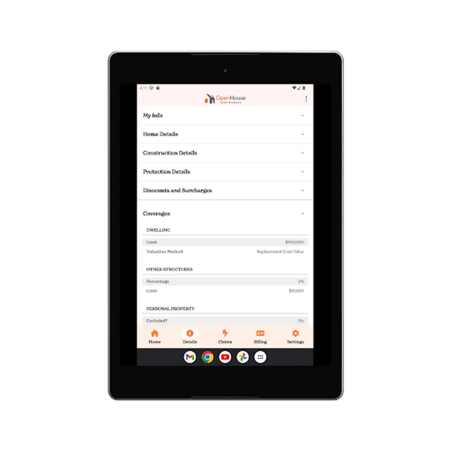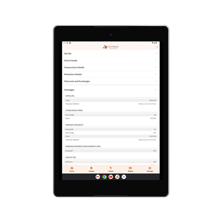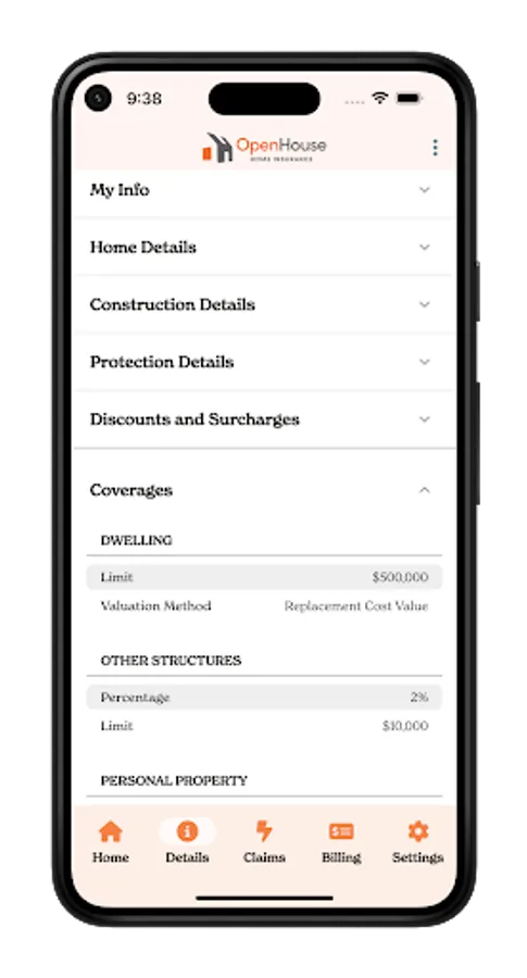 • View your deductibles and all your current coverages on your OpenHouse policy, all in one place.