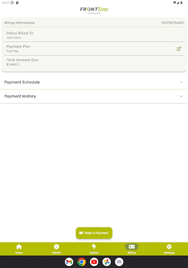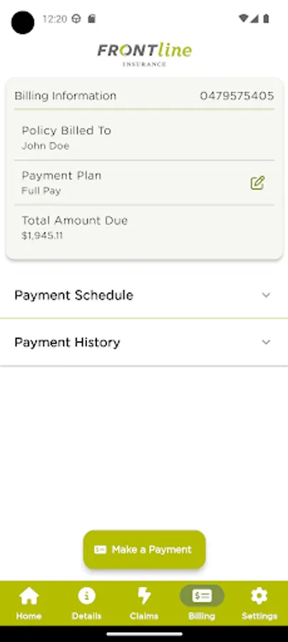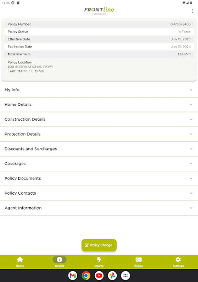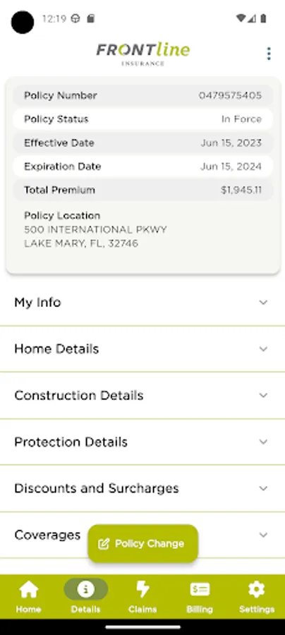 * Review your coverage – View your deductibles and all your current coverages on all of your Frontline Insurance policies in one place.