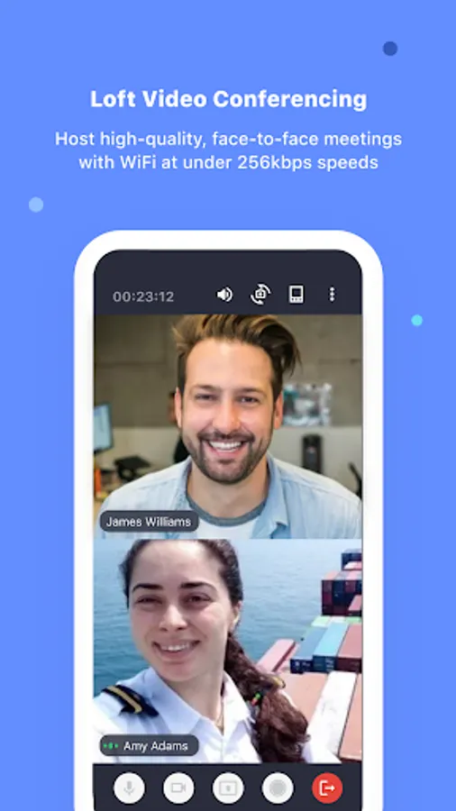 15 minutes group video calls between shore and ship that uses ship's crew WiFi at under 256kbps speeds