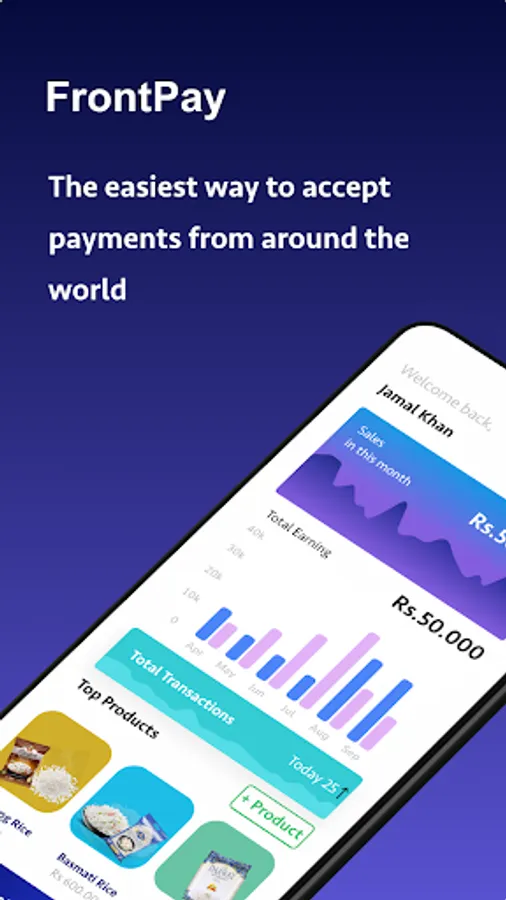 FrontPay - Dashboard App is for businesses to manage their day to day payment, transactions easily. The business users can simply download the App, signup by following the simple process. The app allows the following features: