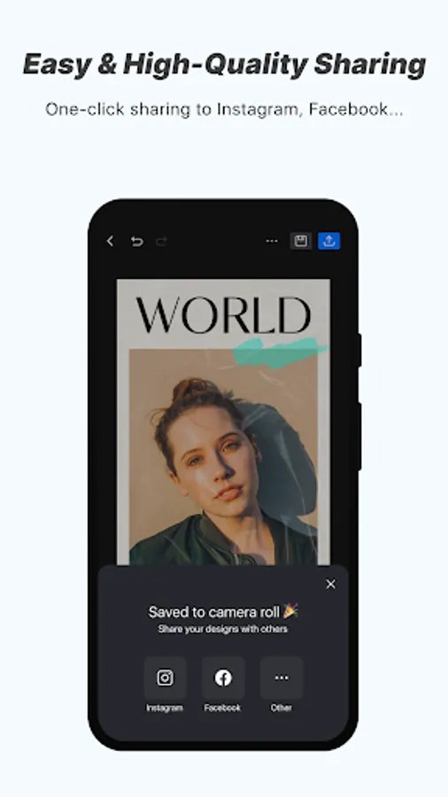 • Quickly export and share your design in high-quality PNG and JPG image formats.