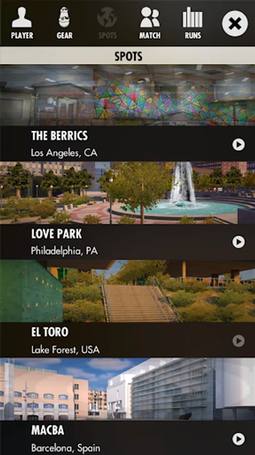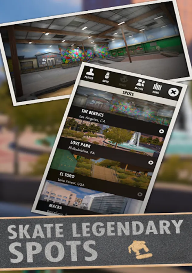 Skate true to life spots including El Toro, Carlsbad Gap, Hollywood High, Stoner Plaza, Camp Woodward, Love Park, MACBA and The Berrics – with even more to come in future updates! Starting with architectural plans, height maps and photos we took on-site, every detail of these legendary spots has been faithfully recreated – down to the graffiti, street signs and even stickers on obstacles.